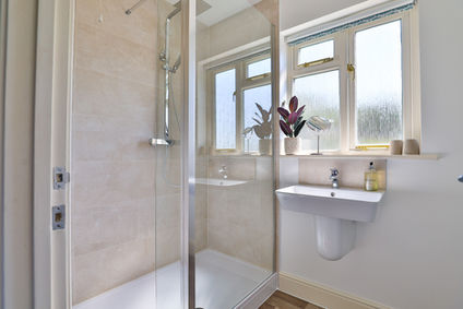 Family bathroom: Bath with rainfall shower over, basin and WC